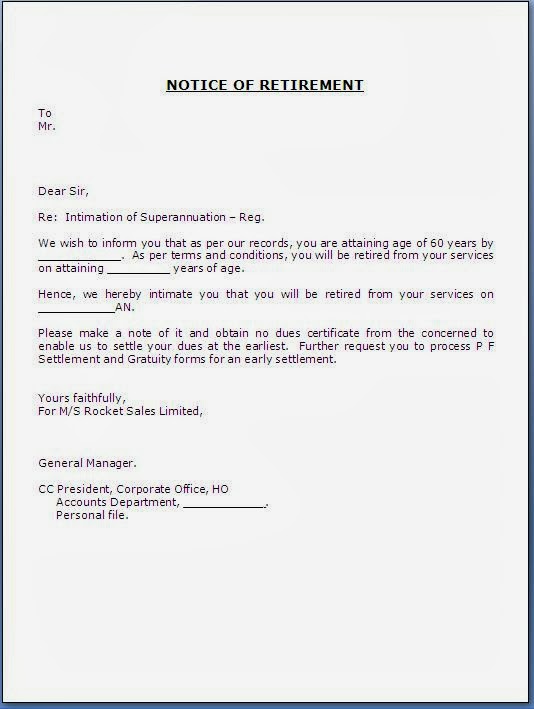 The Retirement Letters Caf??: A Comprehensive Collection of Retirement Letters, Retirement Quotes, Sample Retirement Letters, and Advice on How to Write a Retirement Letter. I would like to inform you that I am about to retire from my position as a customer service representative from. A retirement letter, contrary to the belief that it is an informal farewell letter, requires attention to detail and a professional tone. A retirement letter can be a way to express thanks for a long career at the company and the privilege of holding a leadership position. The reason for retirement is very crucial and sometimes very.